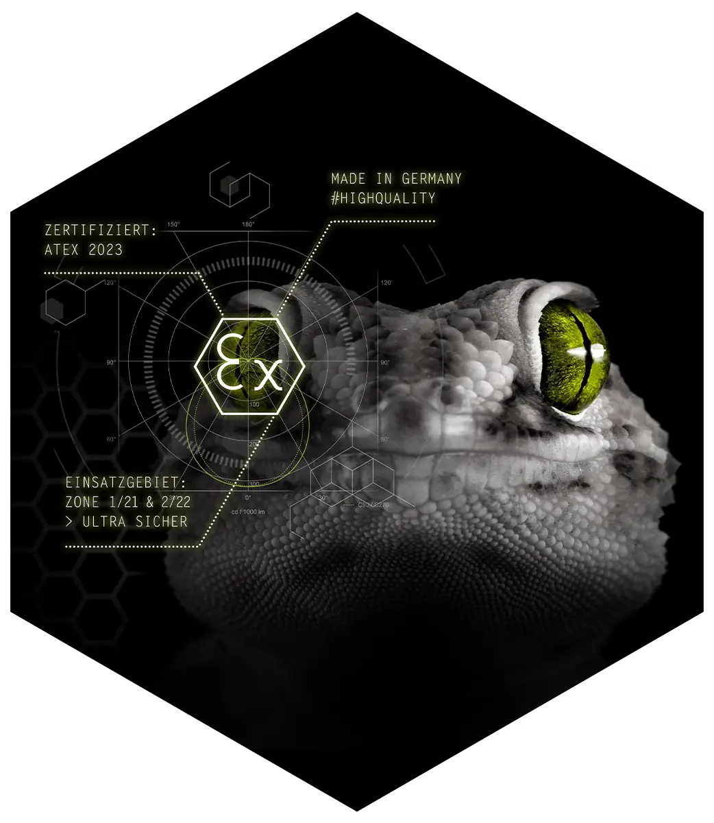 PRACHT lässt die EX-en los! Für die Zonen 1/21 & 2/22 bietet PRACHT mit der GECKO L hochwertige, moderne EX-Leuchten